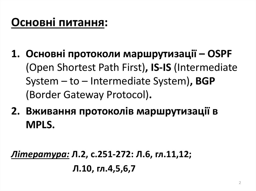 Основні питання:1. Основні протоколи маршрутизації – OSPF