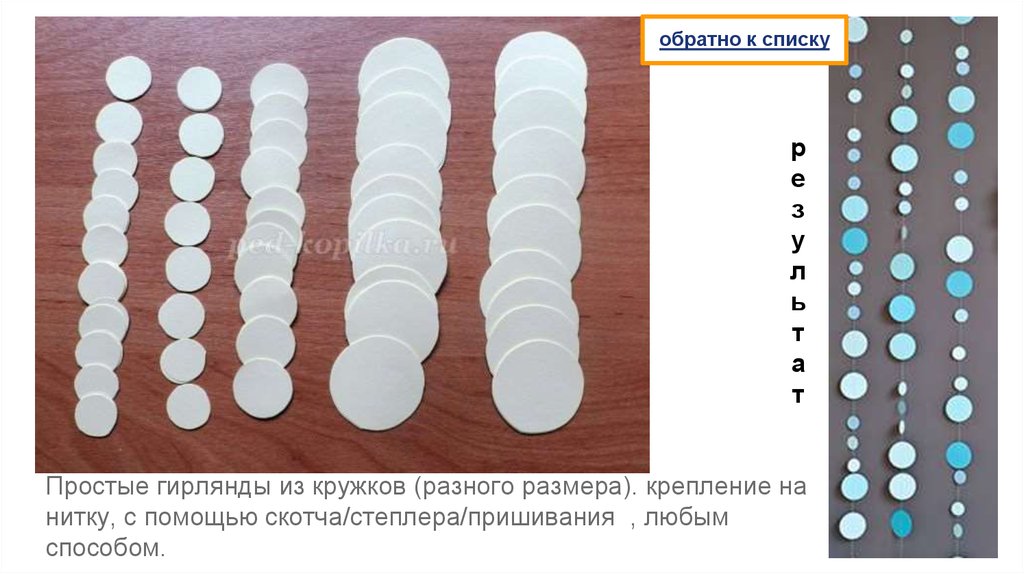 Простые гирлянды из кружков (разного размера). крепление на