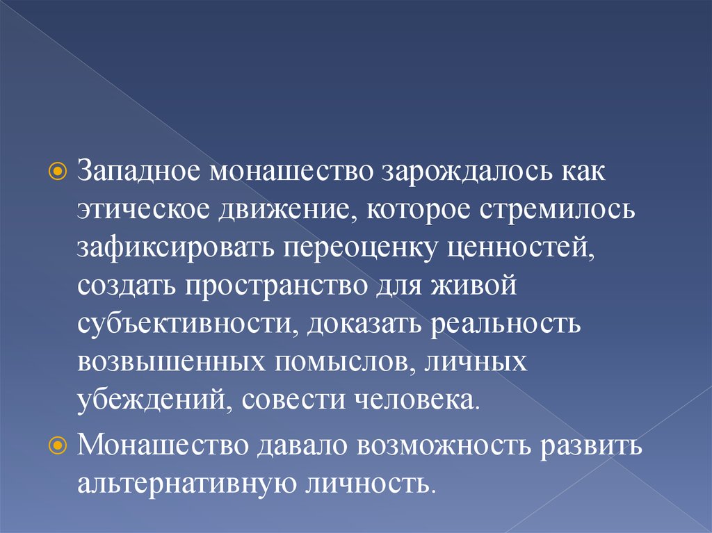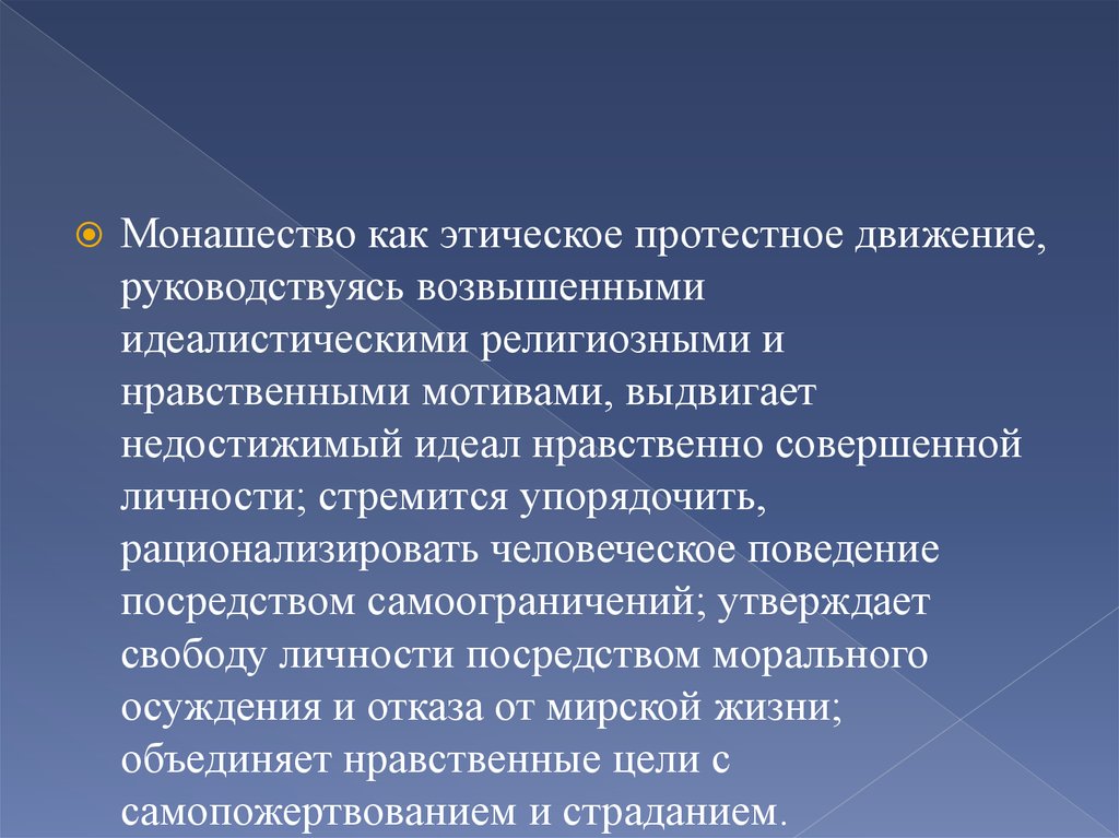 Монашество как этическое протестное движение,руководствуясь возвышенными