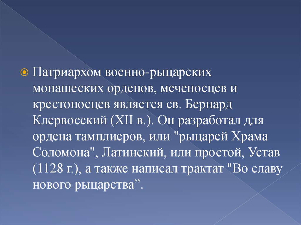 Патриархом военно-рыцарскихмонашеских орденов, меченосцев и