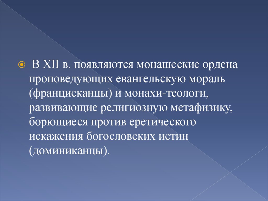 В ХII в. появляются монашеские орденапроповедующих евангельскую мораль
