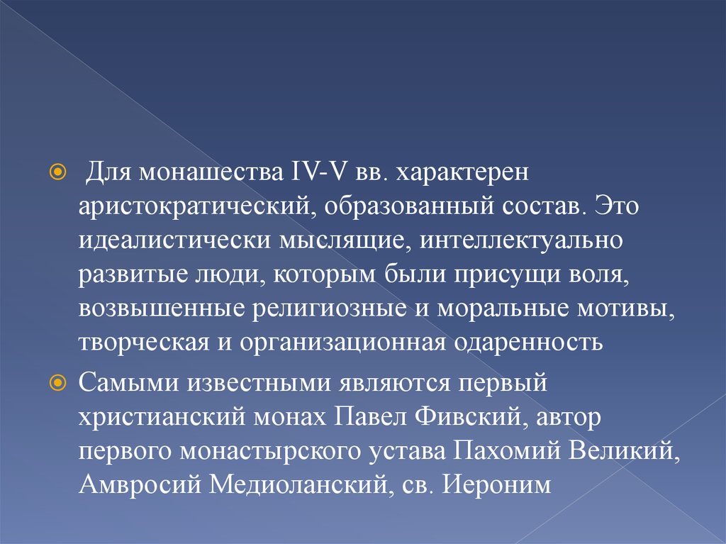 Для монашества IV-V вв. характеренаристократический, образованный состав. Это