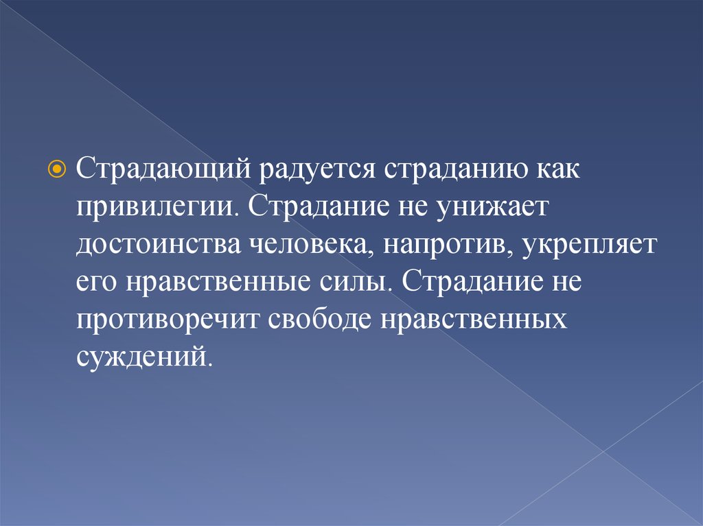 Страдающий радуется страданию какпривилегии. Страдание не унижает