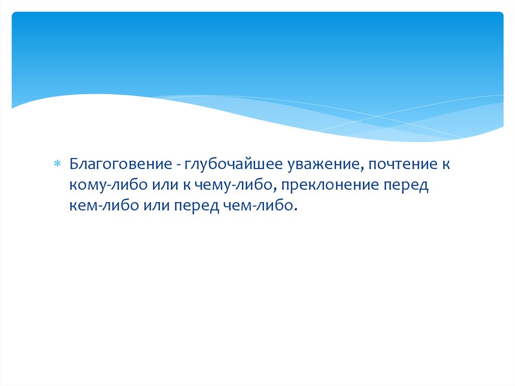 Благоговение - глубочайшее уважение, почтение ккому-либо или к чему-либо, преклонение перед