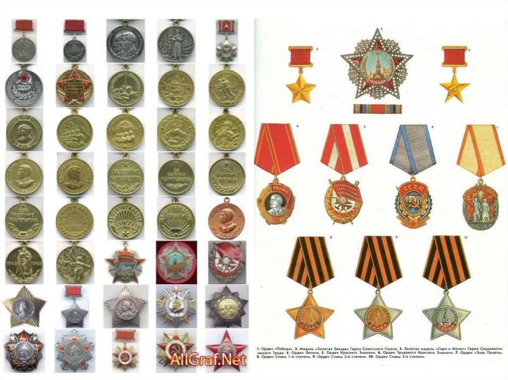 медалей СССР, нагрудных знаках и т. д.