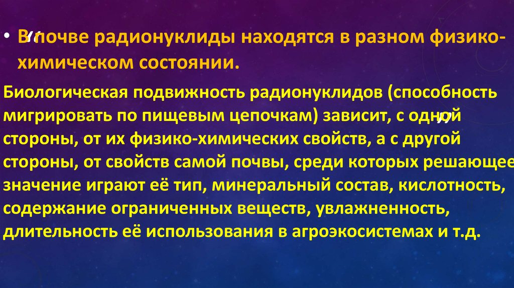 • В почве радионуклиды находятся в разном физикохимическом состоянии.“