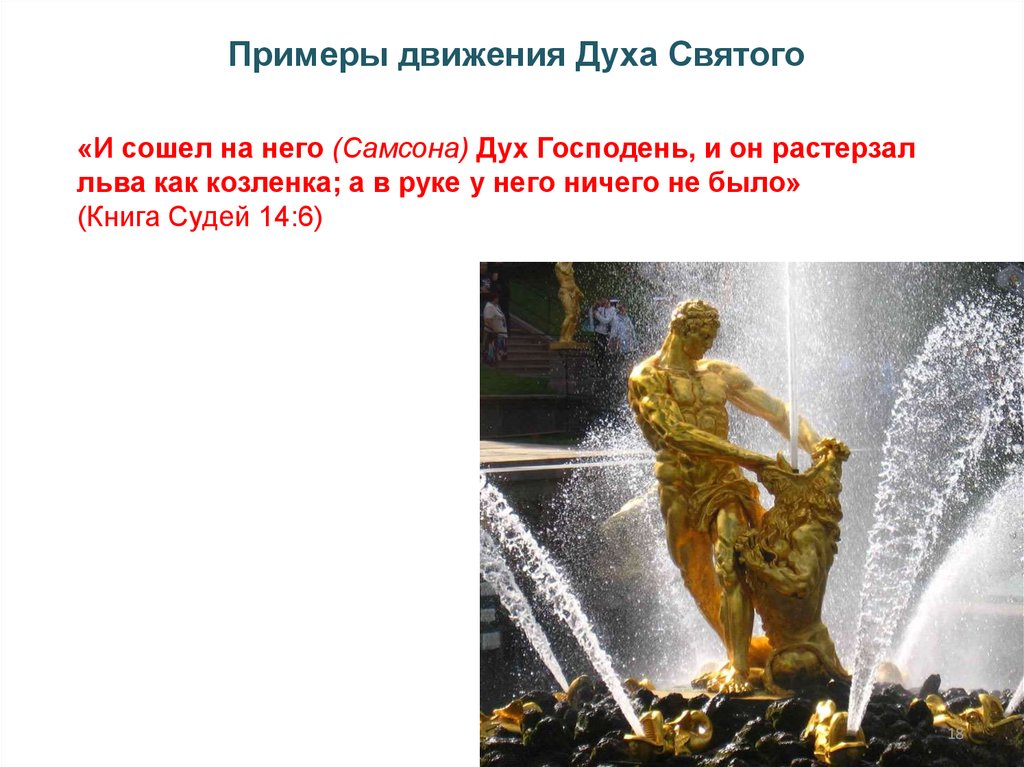 Примеры движения Духа Святого«И сошел на него (Самсона) Дух Господень, и он растерзал