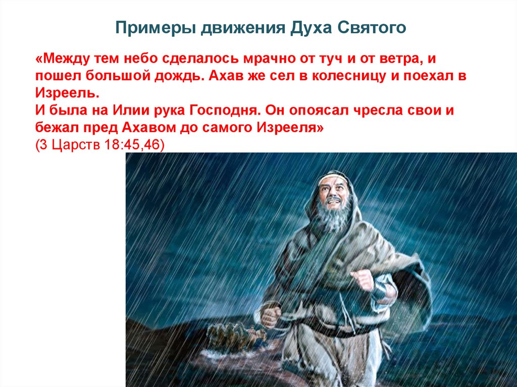 Примеры движения Духа Святого«Между тем небо сделалось мрачно от туч и от ветра, и