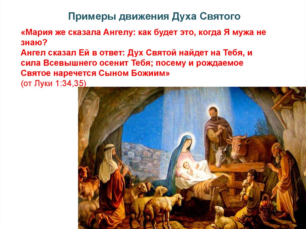 Примеры движения Духа Святого«Мария же сказала Ангелу: как будет это, когда Я мужа не