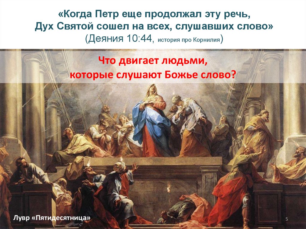 «Когда Петр еще продолжал эту речь,Дух Святой сошел на всех, слушавших слово»