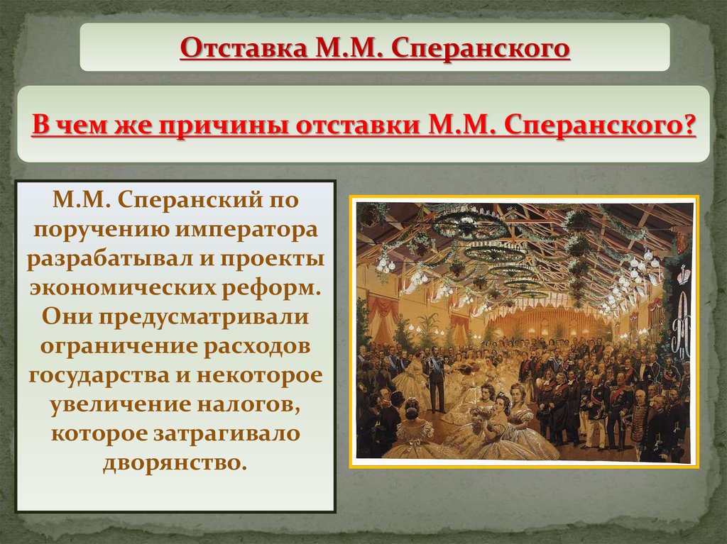 Отставка М.М. СперанскогоВ чем же причины отставки М.М. Сперанского?