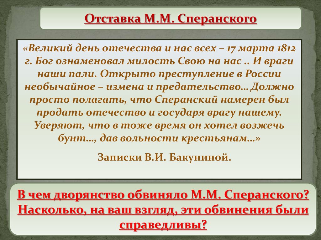 Отставка М.М. Сперанского«Великий день отечества и нас всех – 17 марта 1812