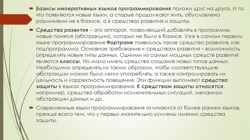 Базисы императивных языков программирования похожи друг на друга. И то,что появляются новые языки, а старые продолжают жить, обусловлено