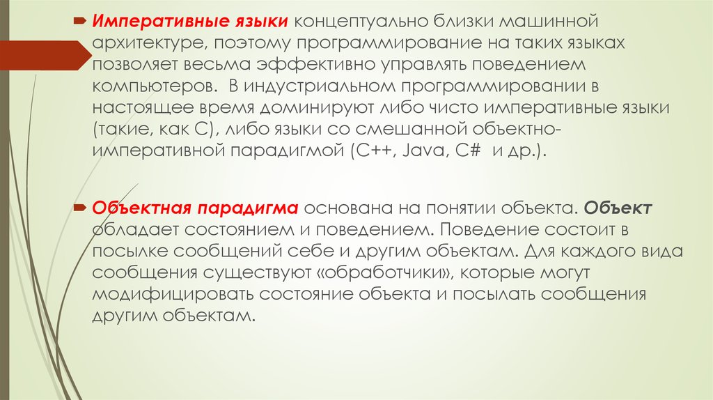 (такие, как С), либо языки со смешанной объектноимперативной парадигмой (С++, Java, C# и др.).