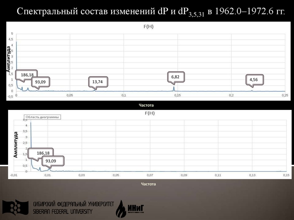 АмплитудаСпектральный состав изменений dP и dP3,5,31 в 1962.0–1972.6 гг.