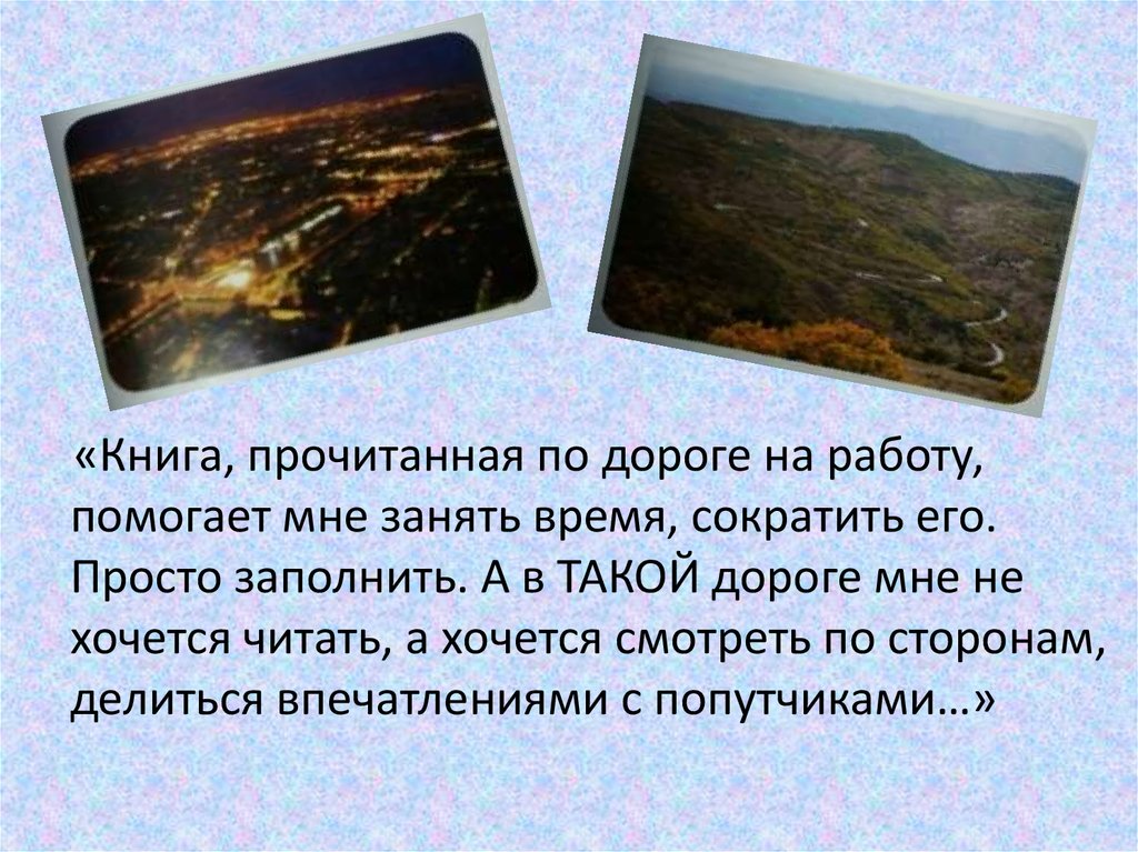 «Книга, прочитанная по дороге на работу,помогает мне занять время, сократить его.