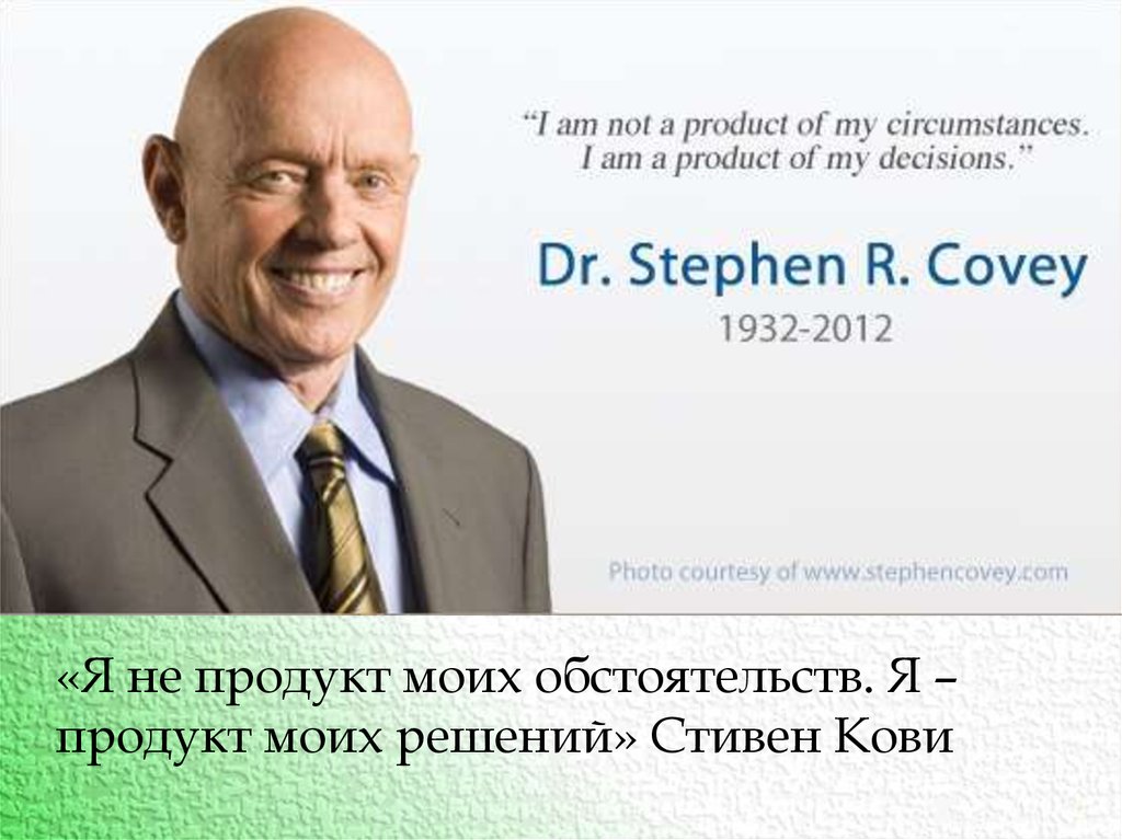 «Я не продукт моих обстоятельств. Я –продукт моих решений» Стивен Кови