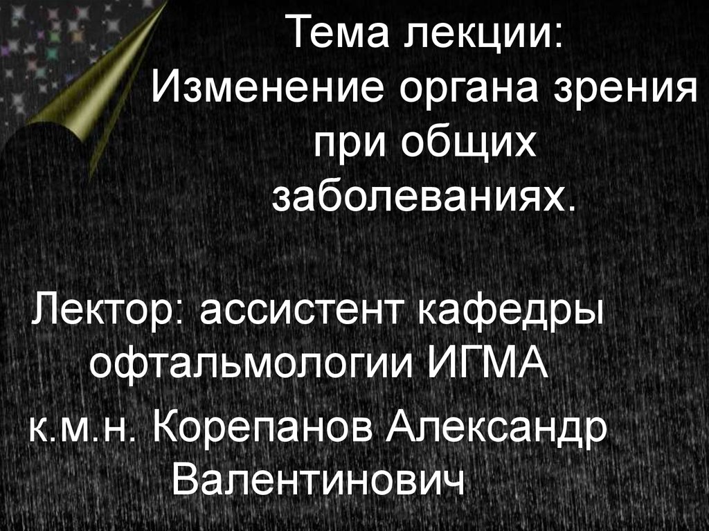 1. Тема лекции: Изменение органа зрения при общих заболеваниях.