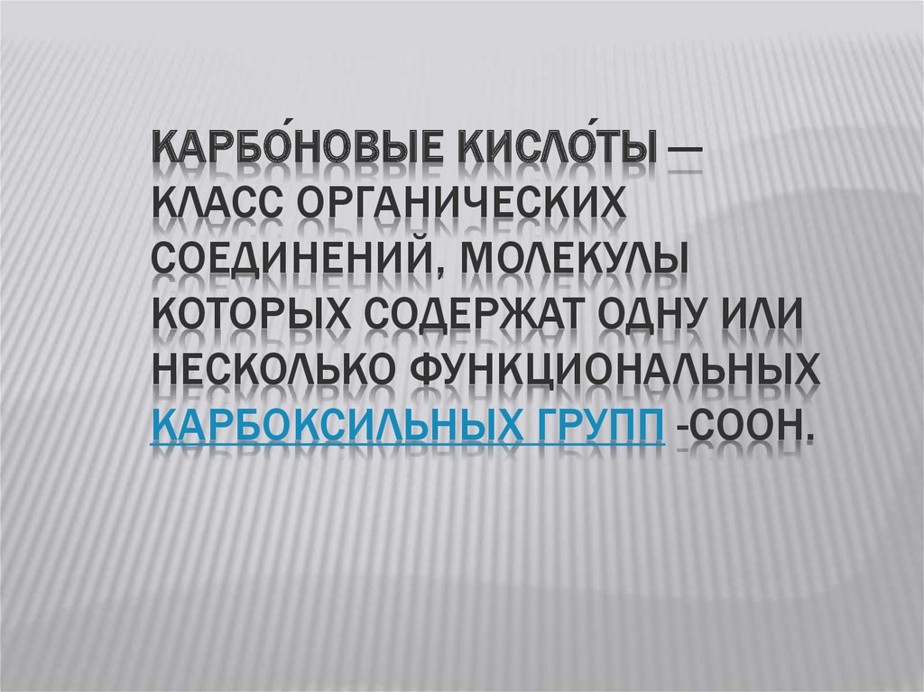 КАРБО́НОВЫЕ КИСЛО́ТЫ —КЛАСС ОРГАНИЧЕСКИХ