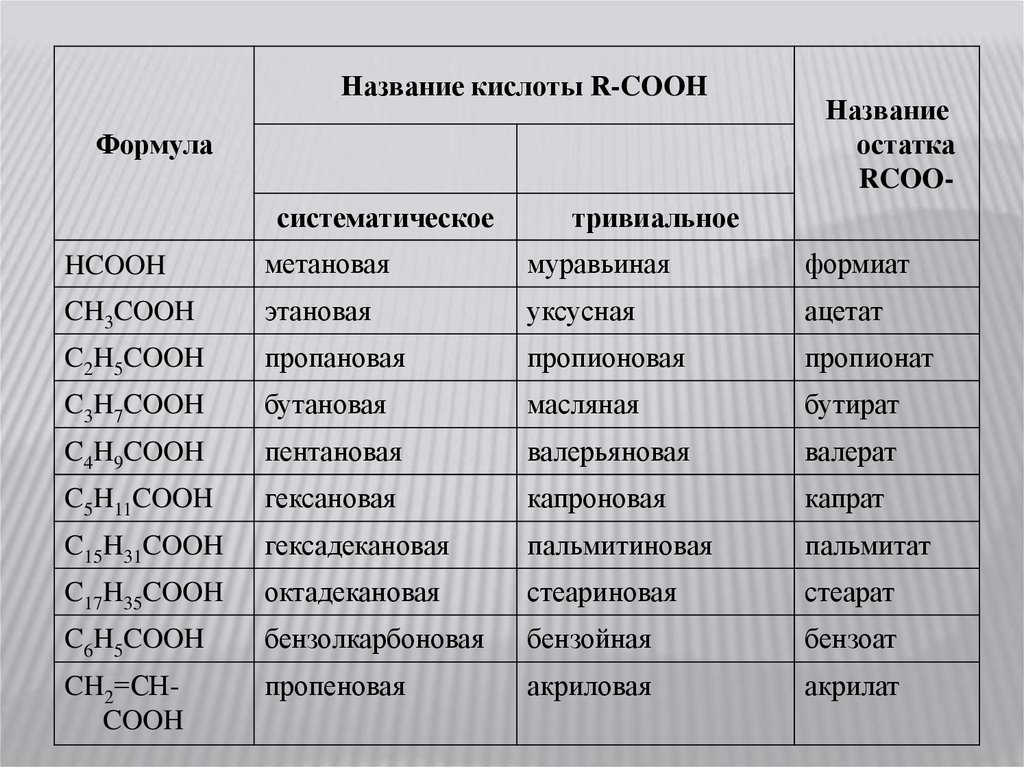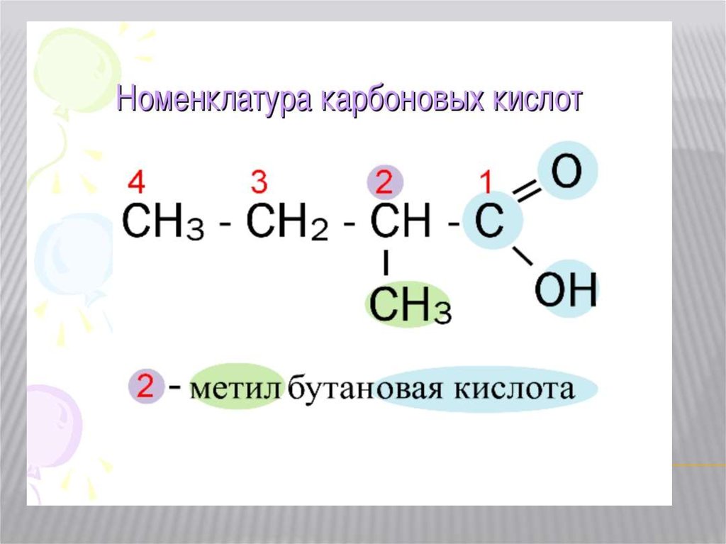 1. Карбо́новые кисло́ты — класс органических соединений, молекулы которых содержат одну или несколько функциональных карбоксильных