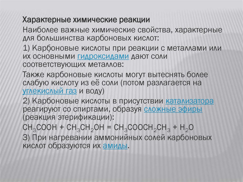 Характерные химические реакцииНаиболее важные химические свойства, характерные
