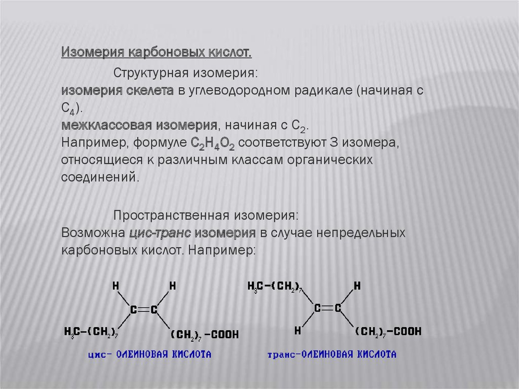 Изомерия карбоновых кислот.Cтруктурная изомерия: