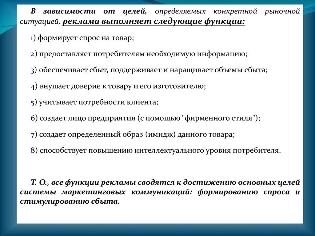 Т. О., все функции рекламы сводятся к достижению основных целей