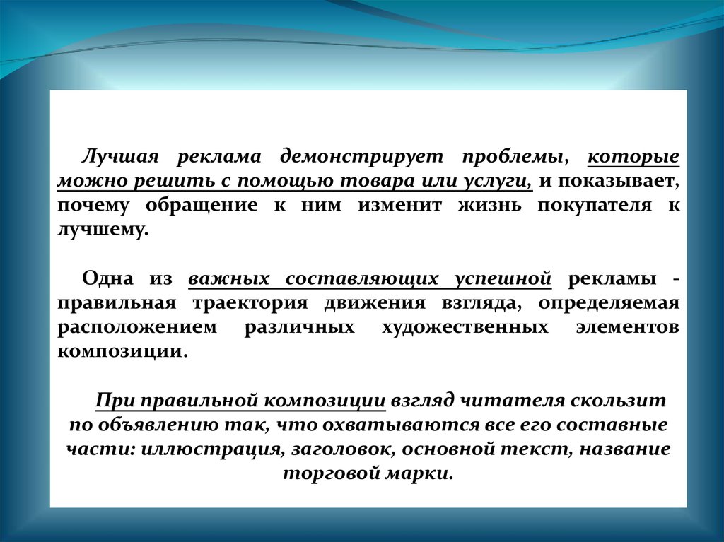 Лучшая реклама демонстрирует проблемы, которыеможно решить с помощью товара или услуги, и показывает,