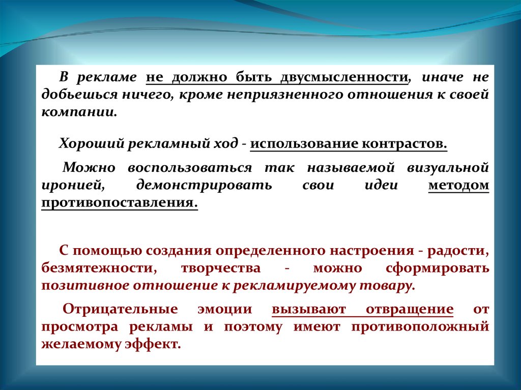 В рекламе не должно быть двусмысленности, иначе недобьешься ничего, кроме неприязненного отношения к своей