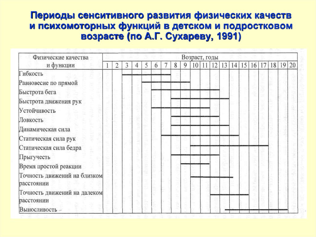 Периоды сенситивного развития физических качестви психомоторных функций в детском и подростковом