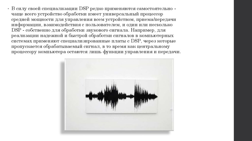 В силу своей специализации DSP редко применяются самостоятельно чаще всего устройство обработки имеет универсальный процессор