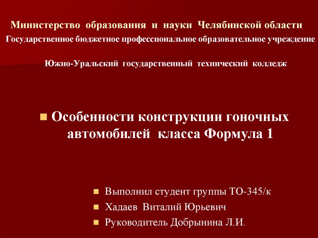 Государственное бюджетное профессиональное образовательное учреждениеЮжно-Уральский государственный технический колледж