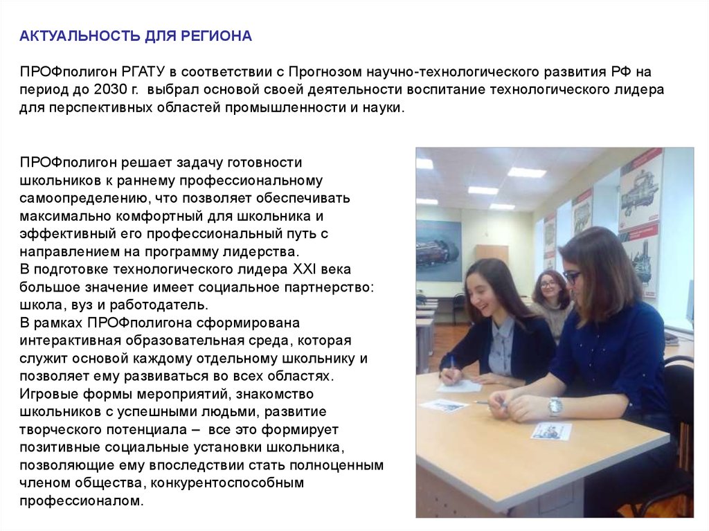 АКТУАЛЬНОСТЬ ДЛЯ РЕГИОНАПРОФполигон РГАТУ в соответствии с Прогнозом научно-технологического развития РФ на