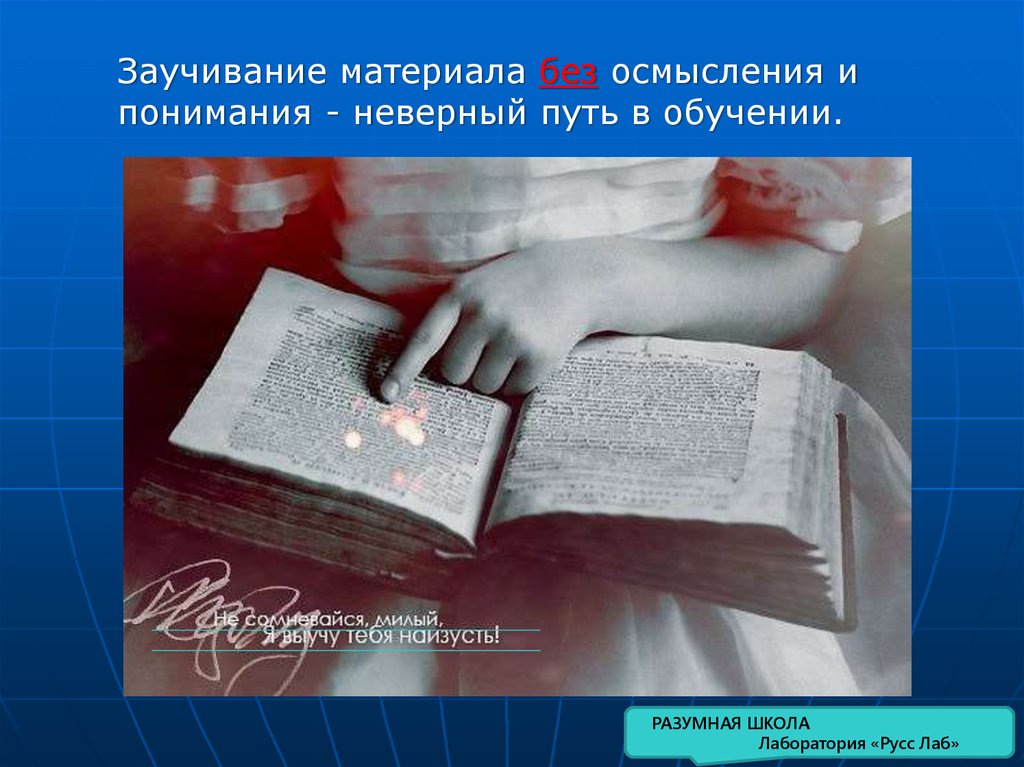 Заучивание материала без осмысления ипонимания - неверный путь в обучении.