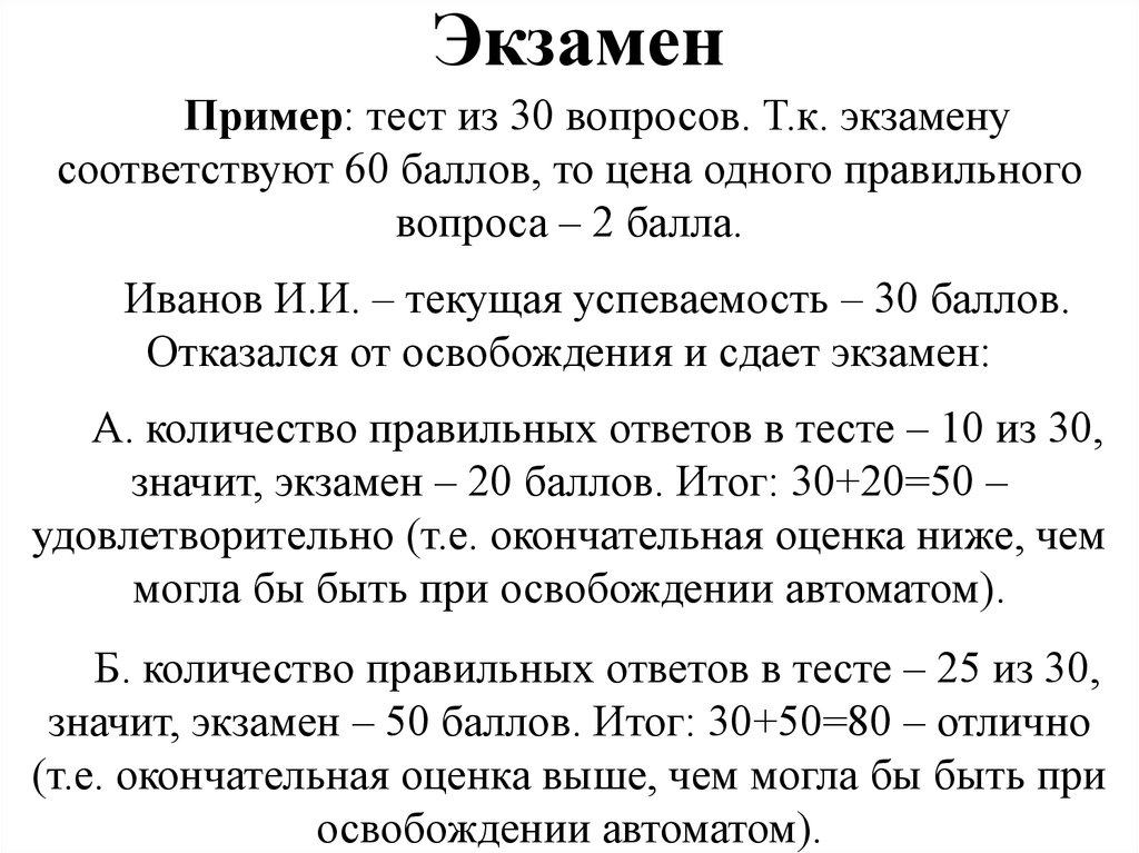 значит, экзамен – 50 баллов. Итог: 30+50=80 – отлично
