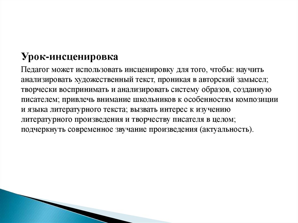 Урок-инсценировкаПедагог может использовать инсценировку для того, чтобы: научить