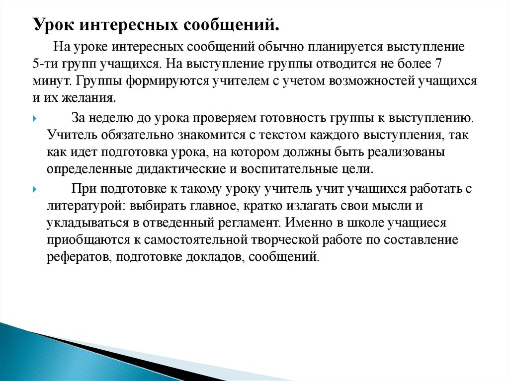 Урок интересных сообщений.На уроке интересных сообщений обычно планируется выступление