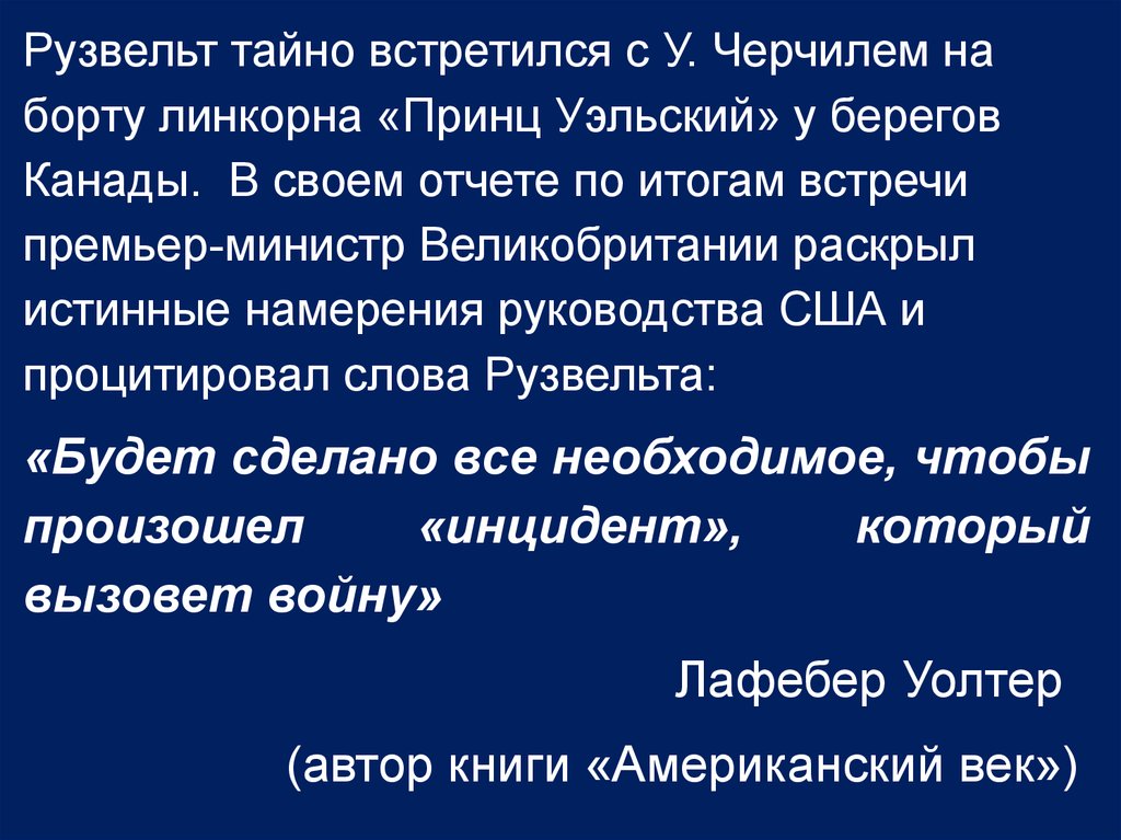 Рузвельт тайно встретился с У. Черчилем наборту линкорна «Принц Уэльский» у берегов