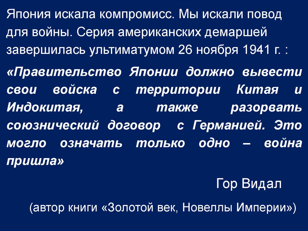 Япония искала компромисс. Мы искали поводдля войны. Серия американских демаршей