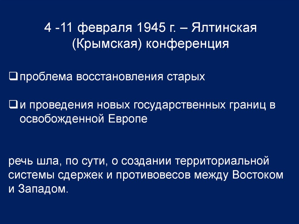 4 -11 февраля 1945 г. – Ялтинская(Крымская) конференция