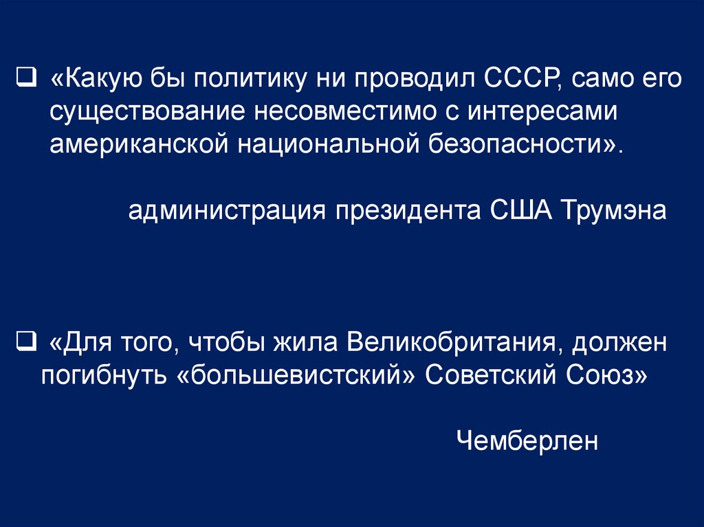 «Какую бы политику ни проводил СССР, само егосуществование несовместимо с интересами
