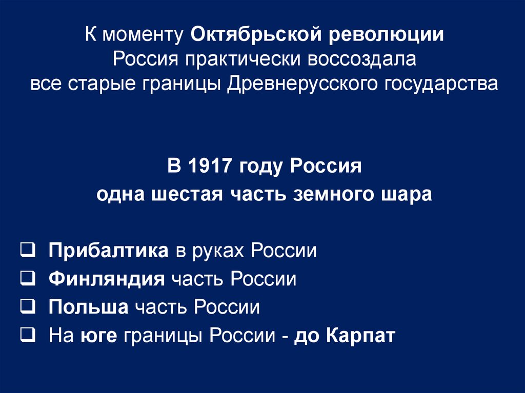 К моменту Октябрьской революцииРоссия практически воссоздала