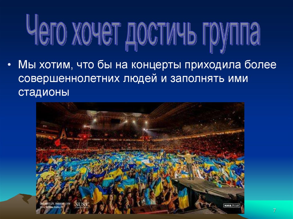 • Мы хотим, что бы на концерты приходила болеесовершеннолетних людей и заполнять ими