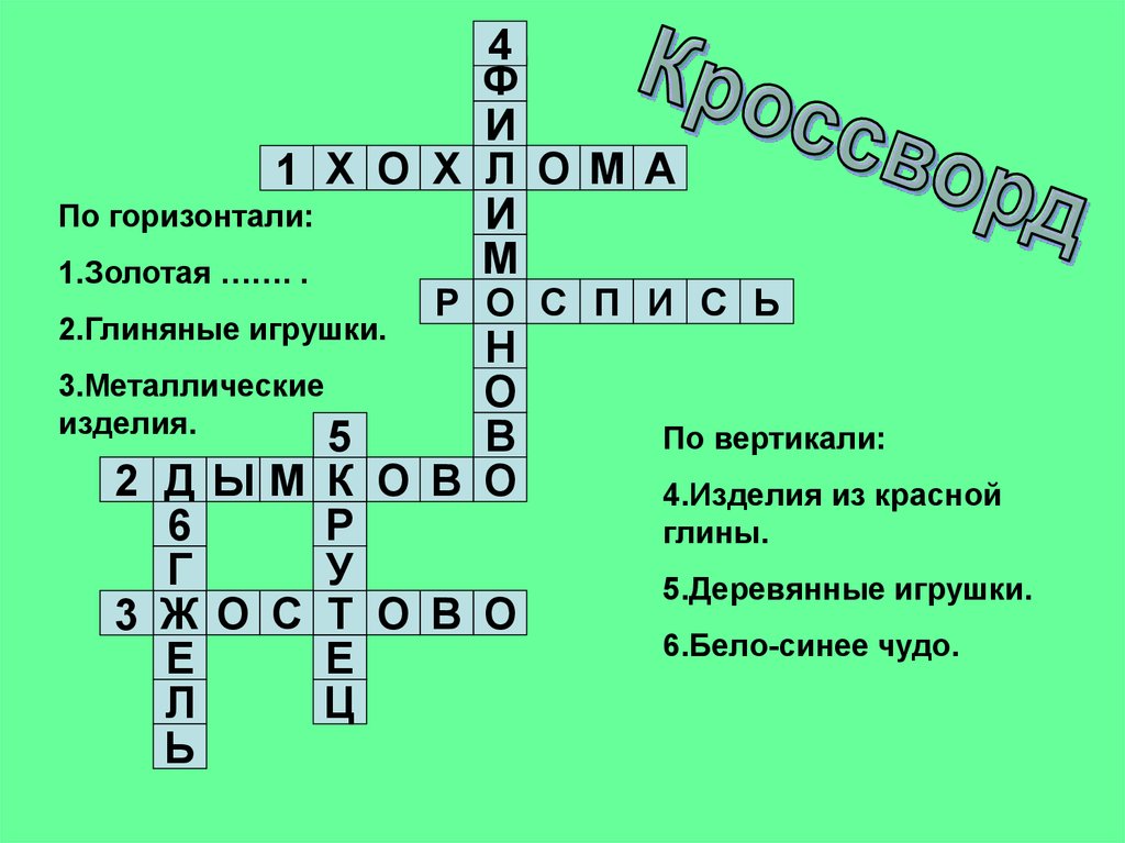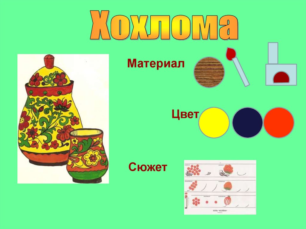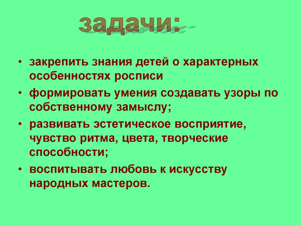 • закрепить знания детей о характерныхособенностях росписи