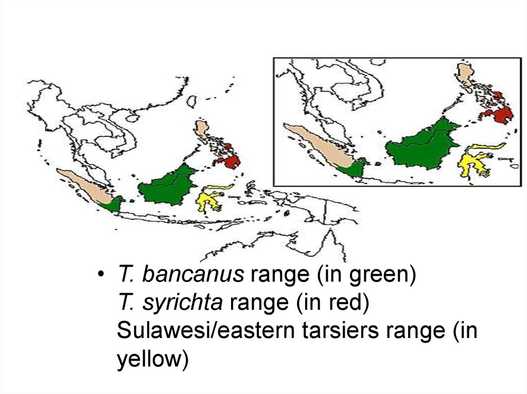 • T. bancanus range (in green)T. syrichta range (in red)