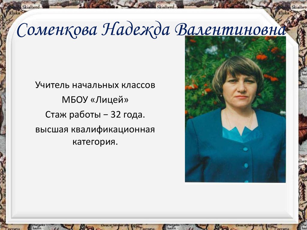 Соменкова Надежда ВалентиновнаУчитель начальных классов