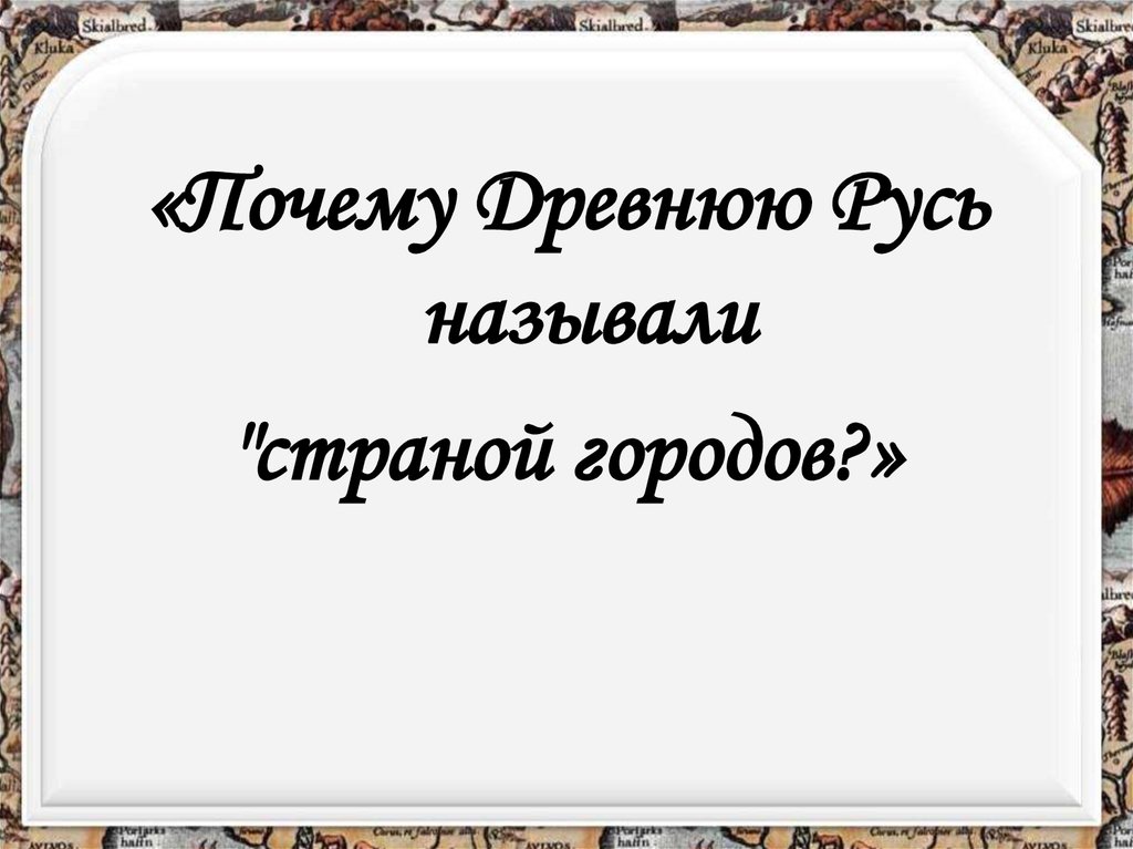 Древнюю Русь называли «странойгородов» за то, что города являлись