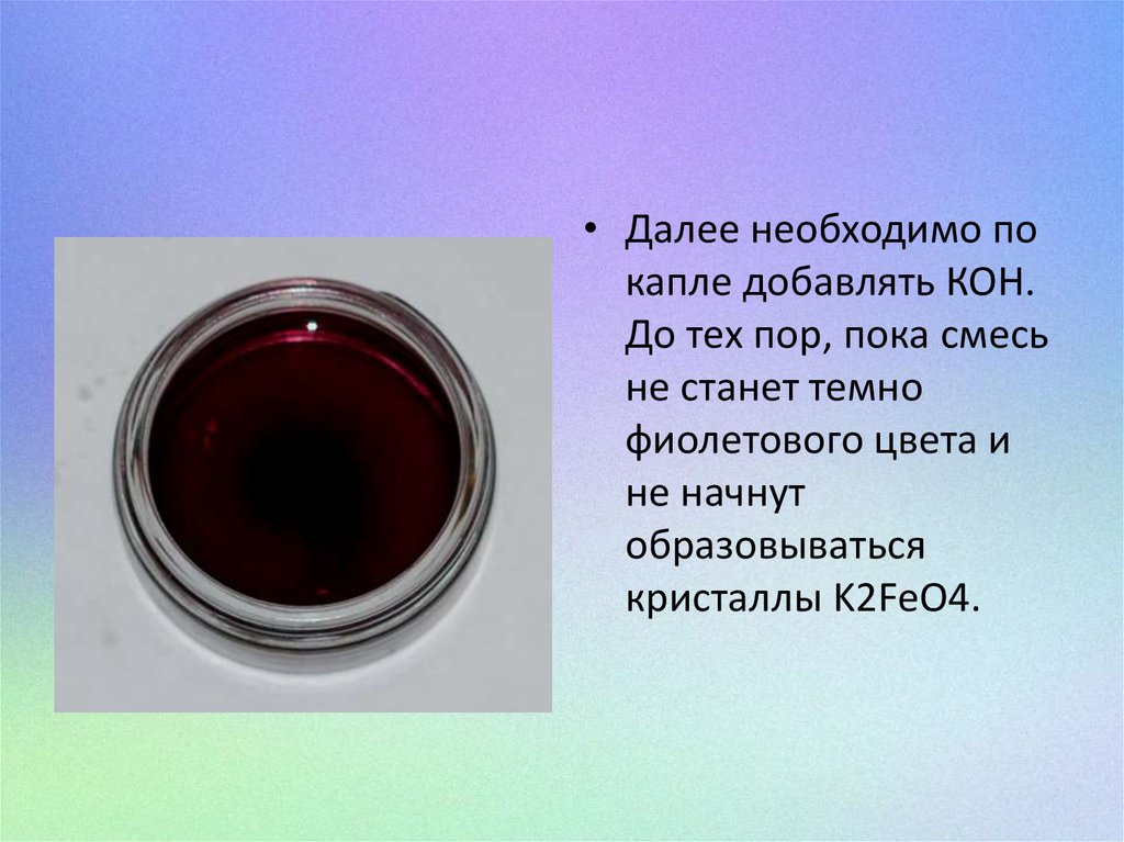 • Далее необходимо покапле добавлять КОН.