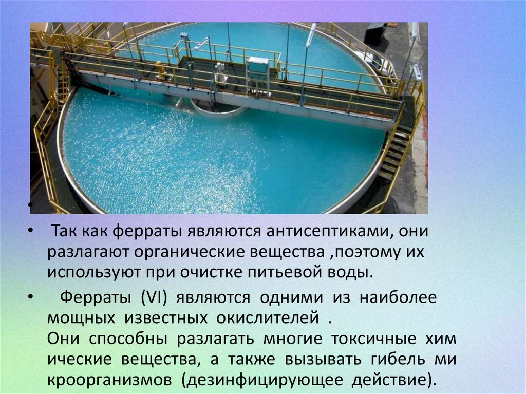 • Так как ферраты являются антисептиками, они