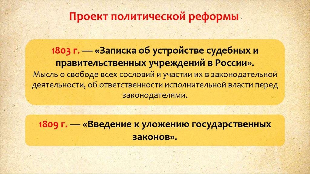 Проект политической реформы1803 г. — «Записка об устройстве судебных и